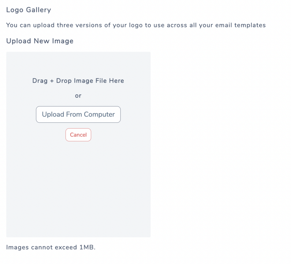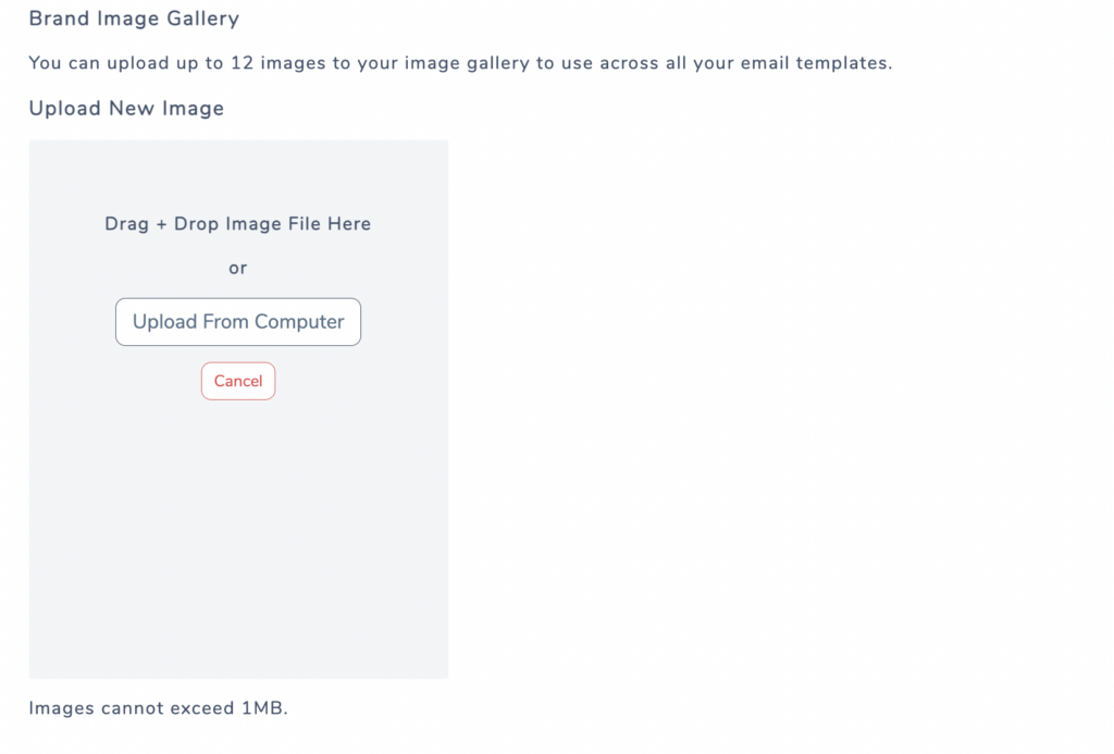 You can add up to 12 images to your brand elements. These can be commonly used images you may want to include in you email templates, such as an image of your store front, images of sample dresses or maybe designer logos.